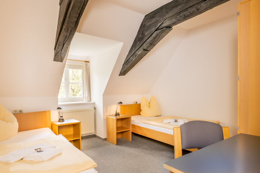 Unser Haus bietet Ihnen 88 Einzel- oder Doppelzimmer mit Dusche und WC. Sie sind im historischen Richterhaus oder in unserem Gästehaus gelegen.