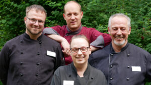 v.l.n.r. Torben Mischel (Koch), Oliver Mai (Chefkoch), Kerstin Jacob-Raudies (Köchin), Rainer Koslowski (Koch)